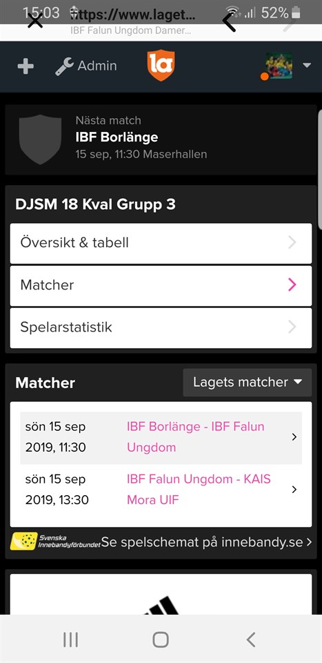 Kvalet spelades i Maserhallen under söndagen. I första matchen vann tjejerna mot IBF Borlänge med 4-2 efter 2-1 i paus. Andra matchen mot Kais Mora slutade oavgjort 3-3 efter 2-1 i paus. Då Kais Mora sen slog IBF Borlänge med 4-0 så slutade våra rosa tjejer 2:a i kvalet och får nu spela vidare i steg 2. Det spelas 6-8 dec där vi får möta de lag som gått vidare från norrlandregionerna. IBF Falun Utveckling 15 sep 2019 0kommentarer
